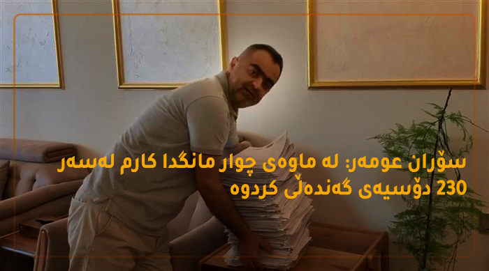سۆران عومەر ئەندامی پەرلەمانى کوردستان لەگرتەیەکی ڤیدیۆییدا ئاشکرایکرد، لەماوەى ١\٩\٢٠١٩ تاکو ١\١\٢٠٢٠ کاری لەسەر ٢٣٠ دۆسیەی گەندەڵی کردووە و لەڕێگەی پرسیار و یاداشتەوە ئاڕاستەى حکومەت کراوە.
